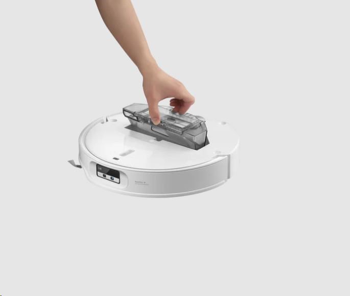 Nový režim namáčení mopu. Vylepšený jednolitý čisticí zásobník nahrazuje oddělený rošt a stěrku, čímž zvětšuje kontaktní plochu s mopem. Díky většímu pokrytí mopu a vyšší kapacitě vody nabízí: Důkladnější praní mopů, Tišší provoz při čištění, Automatické samočištění zásobníku bez nutnosti rozebírání. V kombinaci s režimem „Namáčení“ lze mop před čištěním ponořit, aby se uvolnily i odolné nečistoty – pro ještě efektivnější úklid.