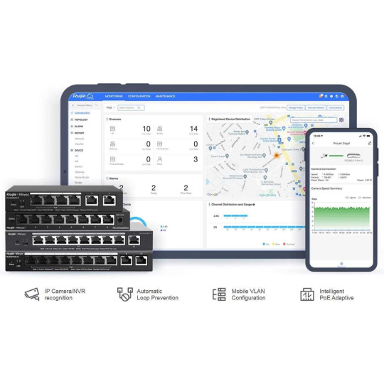 Popis produktu Inteligentní cloudově i přes webové rozhraní spravovatelný smart desktop switch RG-ES208GC od značky Ruijie, nabízí cenově efektivní řešení s 8 Gigabit LAN porty. Tento kompaktní přepínač je ideální pro síťové aplikace, které vyžadují výkon a spolehlivost. Co se výčtu funkcí týče, switch nabízí tichý chod bez ventilátorů, podporu až 16 VLAN, DHCP snooping, testování kabelu a ochranou proti zakruhování. Klíčové vlastnosti • 8× 10/100/1000 Mbps LAN porty • Kvalitní provedení, kovové šasi • Bez venilátoru • Nízká spotřeba - max. 4 W • Správa přes webové rozhraní a cloud • Celoživotní správa na Ruijie Cloud kdykoli a kdekoli • Rozpoznávání IP kamer - jedinečná hodnota pro CCTV síť • Automatická prevence proti zakruhování Obsah balení • Zařízení • Napájecí adaptér 5 V/1 A Technické parametry Konektory a rozhraní Rychlost LAN:(8) 10/100/1000Mbps Napájení Typ napájení:DC konektor Max. spotřeba energie [W]:4 Napájení přes konektor/svorkovnici:5V / 1A Fyzické charakteristiky Provedení:Desktop Ventilátory:Bez ventilátoru Šasi:Kovové Tlačítka:Reset Provozní teplota [°C]:0 až 40 Šířka [mm]:160 Výška [mm]:24 Hloubka [mm]:75 Obecné Rychlost přepínání [Gbps]:16 Tabulka MAC adres:4000 Rychlost předávání paketů [Mpps]:11,9 Software Web management:Ano Management:Webové rozhraní, Ruijie cloud Funkce:VLAN, DHCP snooping Výchozí IP adresa:10.44.77.200 Výchozí jméno a heslo:Nastavuje se při prvním spuštění.