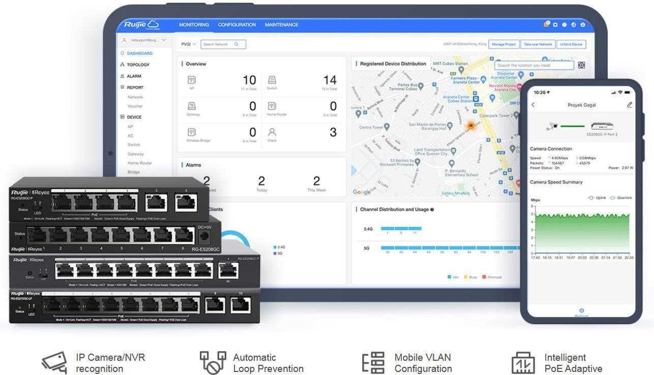 Popis produktu Inteligentní cloudově i přes webové rozhraní spravovatelný smart 19" rackmount switch RG-ES224GC od značky Ruijie, nabízí cenově efektivní řešení s 24 Gigabit LAN porty. Tento kompaktní přepínač je ideální pro síťové aplikace, které vyžadují výkon a spolehlivost. Co se výčtu funkcí týče, switch nabízí tichý chod bez ventilátorů, podporu až 16 VLAN, DHCP snooping, testování kabelu a ochranou proti zakruhování. Klíčové vlastnosti • 24× 10/100/1000 Mbps LAN porty • Kvalitní provedení, kovové šasi, 19" rackmount provedení • Bez venilátoru • Nízká spotřeba - max. 14 W • Správa přes webové rozhraní a cloud • Celoživotní správa na Ruijie Cloud kdykoli a kdekoli • Rozpoznávání IP kamer - jedinečná hodnota pro CCTV síť • Automatická prevence proti zakruhování Obsah balení • Zařízení • Úchyty do racku • Napájecí kabel Technické parametry Konektory a rozhraní Rychlost LAN:(24) 10/100/1000Mbps Napájení Typ napájení:Ze sítě (230V) Max. spotřeba energie [W]:14 Napájení přes konektor/svorkovnici:230V AC Fyzické charakteristiky Provedení:Rackmount Ventilátory:Bez ventilátoru Šasi:Kovové Tlačítka:Reset Provozní teplota [°C]:0 až 50 Šířka [mm]:440 Výška [mm]:44 Hloubka [mm]:165 Obecné Rychlost přepínání [Gbps]:48 Tabulka MAC adres:8000 Rychlost předávání paketů [Mpps]:35,7 Software Web management:Ano Management:Webové rozhraní, Ruijie cloud Funkce:VLAN, DHCP snooping Výchozí IP adresa:10.44.77.200 Výchozí jméno a heslo:Nastavuje se při prvním spuštění.