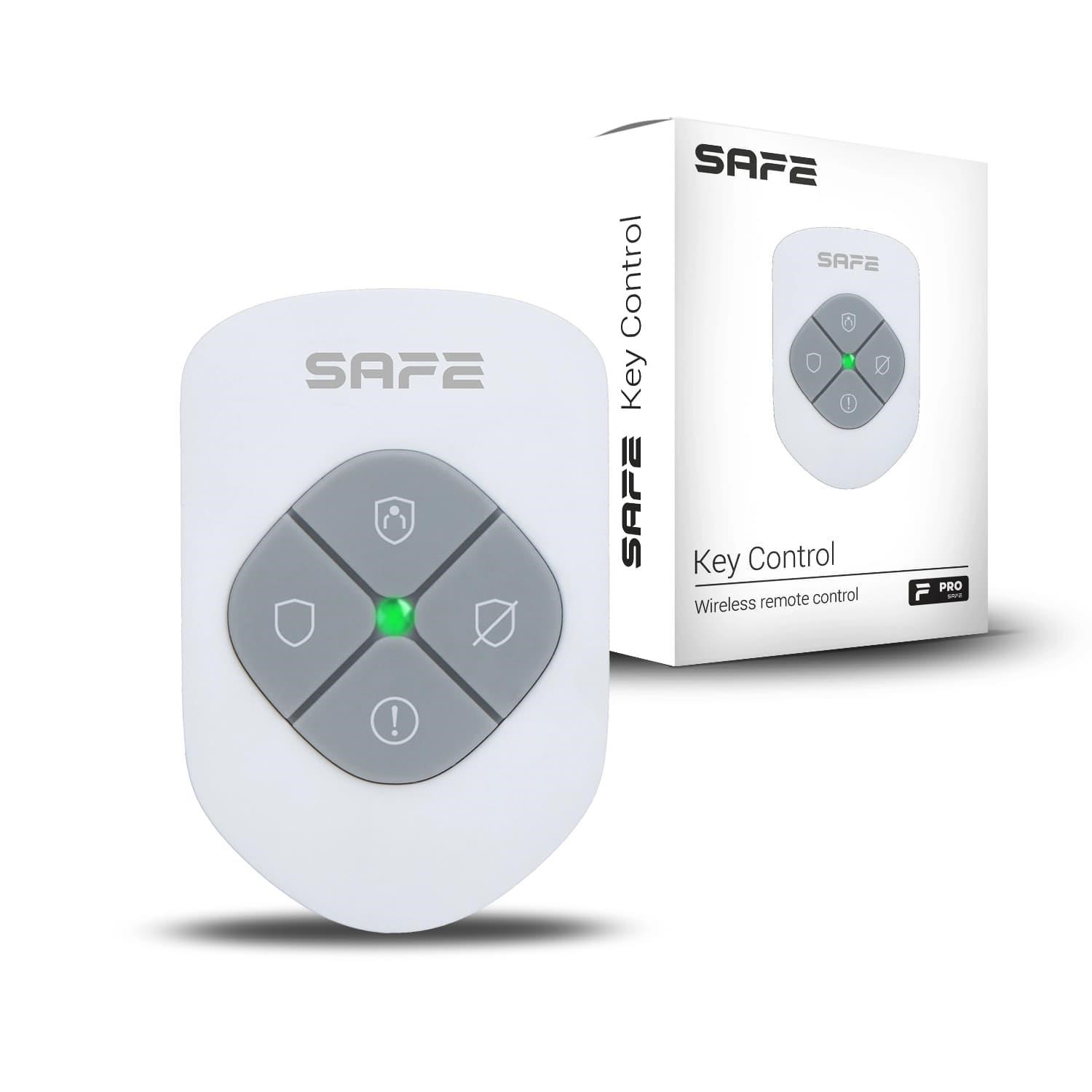 Key Control je praktický bezdrátový dálkový ovladač, který si snadno připnete na klíče, vložíte do kapsy a máte jej tak vždy po ruce. Toto kompaktní a univerzální zařízení je vybaveno třemi tlačítky pro jednoduché ovládání klíčových funkcí zabezpečovacího systému SAFE – částečné aktivace, plné aktivace nebo deaktivace. Navíc obsahuje jedno volně programovatelné tlačítko, které lze využít například k vyhlášení SOS tísňového poplachu, spuštění předem nastavené operace nebo aktivaci automatizačního scénáře.