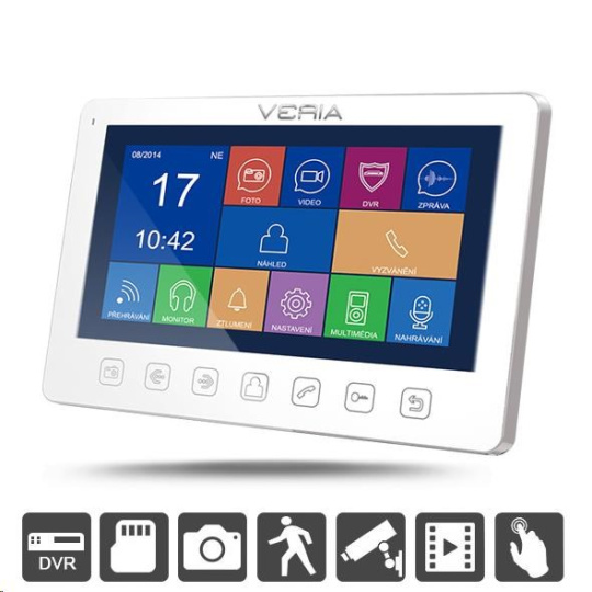 VERIA 7076 ponúka používateľovi komfortnú kombináciu videotelefonu a jednoduchého DVR monitorovacieho systému s možnosťou zachytenia snímky alebo videozáznamu s využitím tak sofistikovaných funkcií ako je napríklad detekcia pohybu alebo podpora pripojenia externých CCTV kamier na sledovanie okolia.