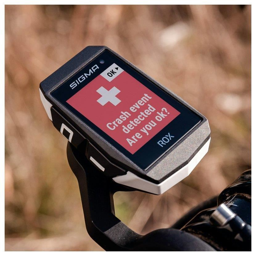 Čidlo pádu CRASH ALERT integrované do ROX 11.1 EVO rozpozná pád a poskytne 30 sekúnd na potvrdenie, že je všetko v poriadku. Ak tomu tak nie je, pomocou aplikácie SIGMA RIDE budú automaticky informovaní núdzoví kontakty prostredníctvom SMS a budú im odoslané GPS súradnice. Navyše je možné uložiť informácie pre prípad núdzovej situácie, ako je krvná skupina, meno a užívané lieky. Tieto údaje sa zobrazia v prípade núdzovej situácie na displeji.