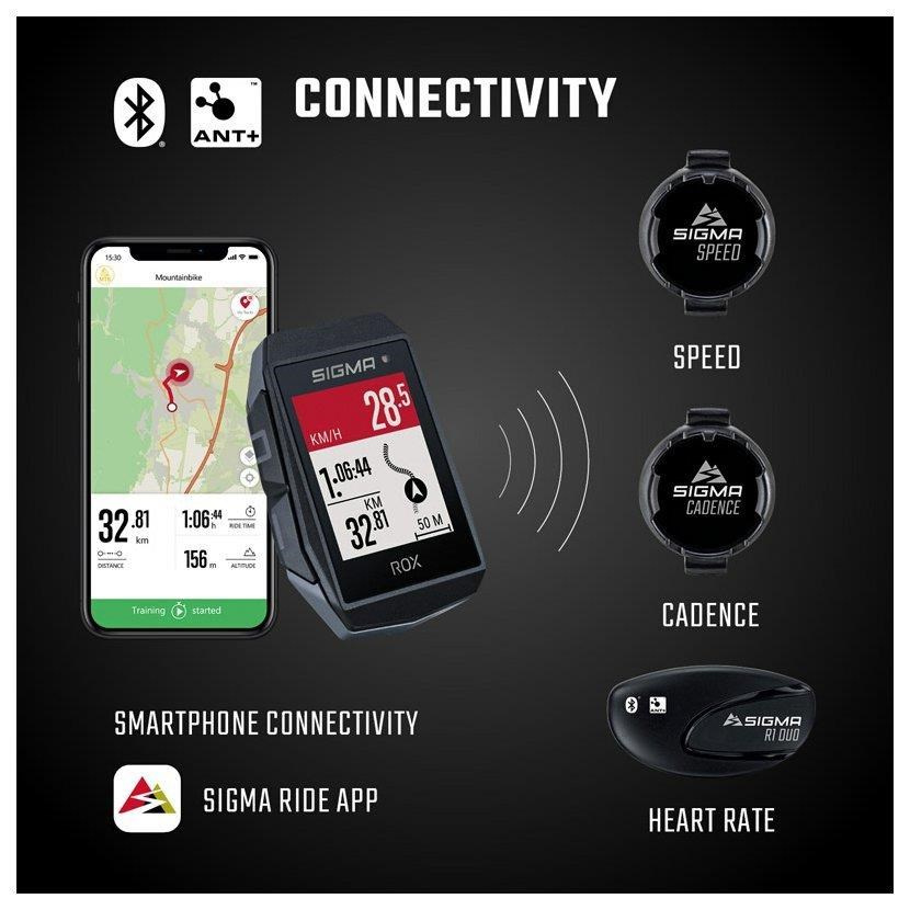 Pomocou technológií BLUETOOTH a ANT+ je možné ľahko a spoľahlivo prepojiť senzory pre meranie rýchlosti, kadencie a tepovej frekvencie.