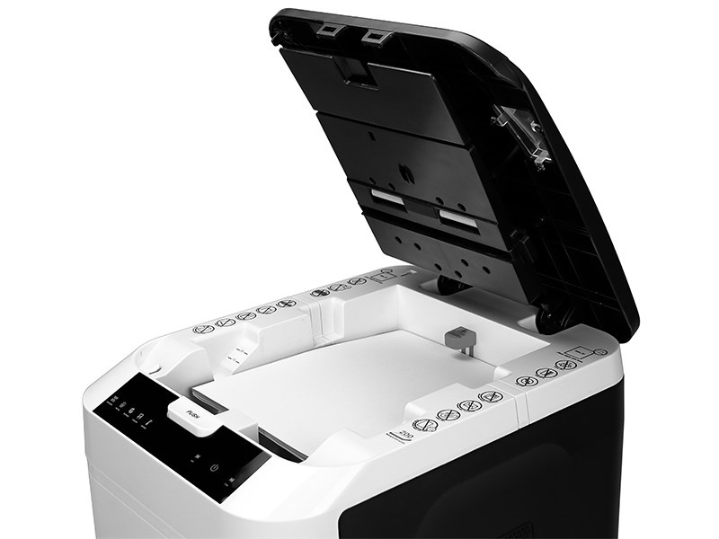 Atraktívne navrhnutá skartovačka pre stredne veľké kancelárie. Vhodný na skartovanie dokumentov so šírkou 240 mm. Stroj je štandardne vybavený automatickým systémom štart/stop, spätným chodom, tepelnou ochranou proti prehriatiu motora a alarmom preplneného koša. Príležitostne je možné skartovať sponky, kreditné karty a CD. Veľmi tichá prevádzka stroja. Nádoba na odpad s priehľadným okienkom. Prístup na CD a kreditnú kartu. Separovaný odpad. Pojazdné kolieska na ľahkú manipuláciu. Farba sivo-biela Hmotnosť (kg) 25 Kapacita (listy 70g/m2) 15 Objem koša (L) 38 Pracovná šírka (mm) 240 Príkon W/V 530/230 Rozmery (mm) 404 x 350 x 667 Rozmery rezu (mm) 2 x 10 Rýchlosť (mm/s) 50 Zošívačky, sponky, CD a platobné karty Funkcia štart/stop Áno Stupeň utajenia GDPR P5 - osobné údaje zamestnancov, majetok, mzda Typ rezu Krížový rez Záruka (mesiace) 24 Reverzácia Áno..