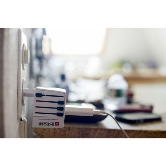 SKROSS MUV USB AC65PD umožňuje bezpečné pripojenie elektronických zariadení v viac ako 220 destináciách po celom svete. Vďaka integrovanému rýchlonabíjaču s portami USB-C a USB-A môžete súčasne napájať notebook, telefón, tablet, powerbanku alebo iné zariadenia. Navyše nemusíte kupovať USB-C kábel, je pribalený k adaptéru.
