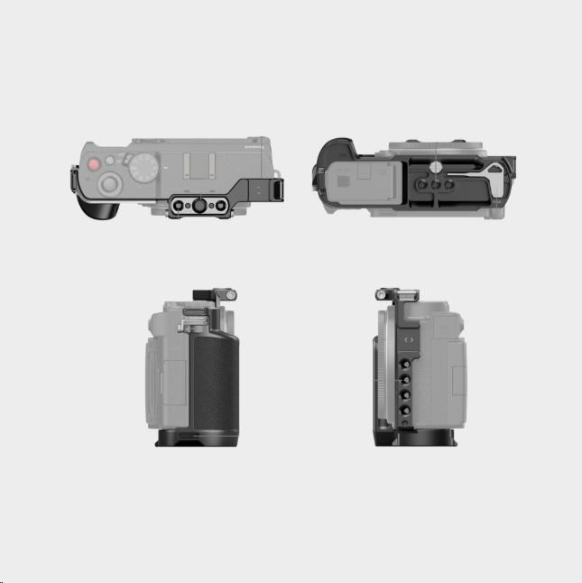Klietka je upevnená skrutkou 1/4"-20 na spodnej časti a bočným zámkom na pravej strane a má na niekoľkých miestach zabudované silikónové tesnenia, ktoré zabraňujú poškriabaniu tela.