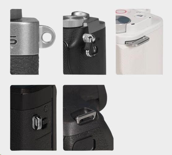Zápästný popruh sa inštaluje prevlečením lanka priamo slučkou ramenného popruhu fotoaparátu, ktorá je kompatibilná s väčšinou rozhraní ramenných popruhov fotoaparátu.