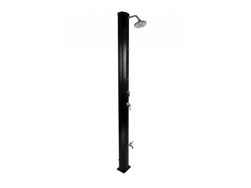 Solárna sprcha je ideálnym zdrojom teplej vody bez použitia elektriny. Voda je v solárnom zásobníku jednoducho ohrievaná slnkom až na 60°C. K tomu prispieva aj čierne prevedenie sprchy. Sprcha je vybavená miešacou pákovou batériou, aby ste si nastavili teplotu vody, ktorá vám bude vyhovovať.
