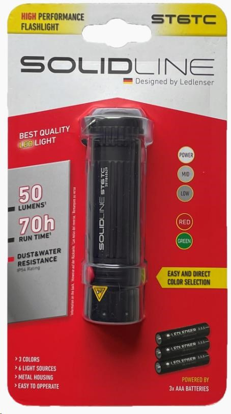 SolidLine ST6TC kompaktní svítilna, LED, bílá, červená a zelená barva, čtyři stupně jasu