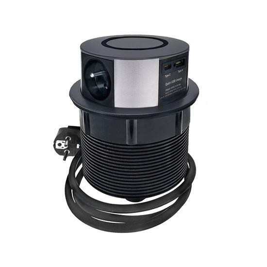 .Solight 3z + USB A+C 20W PD, Wireless 10W, výsuvný blok zásuvek, 2m, černý