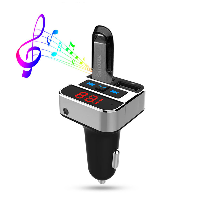- bluetooth FM vysielač na prehrávanie hudby z multimediálnych zariadení, mp3 prehrávač, autonabíjačka + handsfree