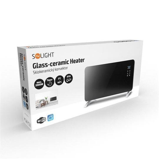 Solight horkovzdušný konvektor sklokeramický 2000W, WiFi, LCD, nastavitelný termostat, časovač
