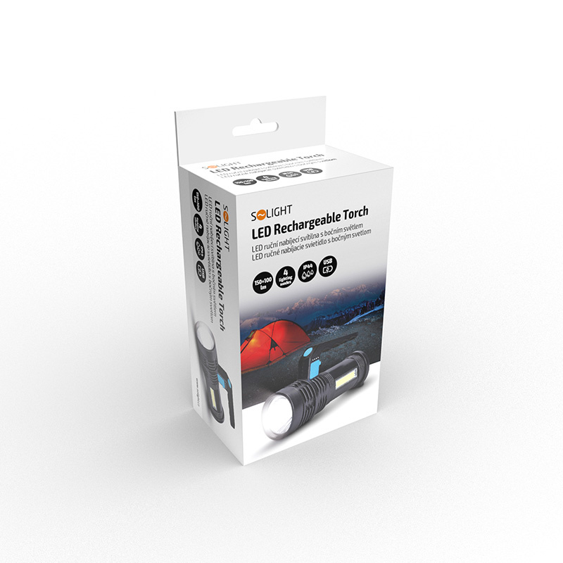 Solight LED nabíjecí svítilna s rukojetí a bočním světlem, 150+100lm, Li-Ion