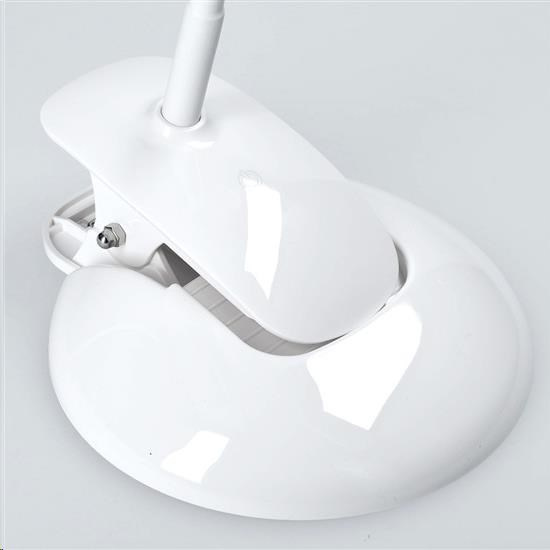 stolná lampička s LED svetelným zdrojom lampička obsahuje pripínací klip aj podstavec pre umiestnenie na stôl tri vymeniteľné farebné kryty súčasťou: biela, čierna, zelená stmievateľná vo troch stupňoch jasu zapínanie a zmena jasu dotykom prsta lampičku je možné ohýbať a natáčať podľa potreby príkon: max. 5W svetelný tok: max. 300lm teplota svetla (chromatičnosti): 4000K (neutrálna biela) farba: biela základňa, meniace sa farebné kryty napájanie: výstup AC 100-240V výstup DC 5V 1A rozmery: cca 380 x 280mm dĺžka napájacieho kábla: 140cm energetická trieda: A+ LED zdroj nie je možné meniť materiál: ABS