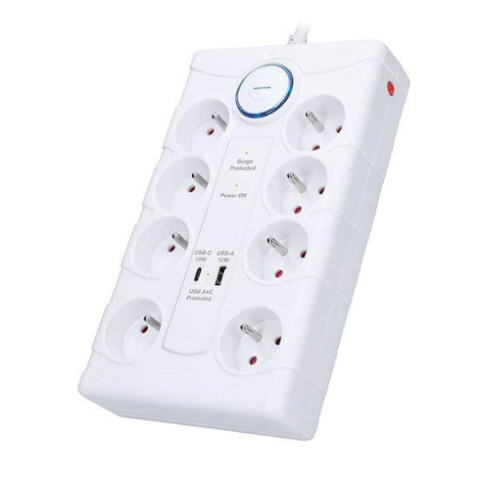 Spoľahlivá prepäťová ochrana s integrovanou USB nabíjačkou chráni vaše zariadenia pred náhlymi výkyvmi napätia. Vďaka ôsmim zásuvkám a dvom USB portom je ideálna do domácnosti aj kancelárie. So maximálnym zaťažením až 3680 W zvládne aj energeticky náročnejšie spotrebiče.