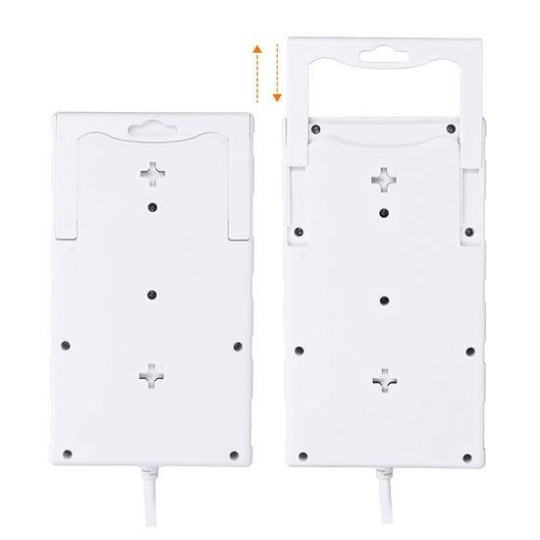 Robustný, dva metre dlhý prívodný kábel poskytuje flexibilitu pri umiestnení. Dve oddelené zásuvky pojmú aj väčšie napájacie adaptéry bez prekážania ostatným zásuvkám. Výsuvný držák na zadnej strane slúži na usporiadanie káblov, príp. na zavesenie alebo prenášanie. Nechýbajú ani montážne otvory pre pevné uchytenie.