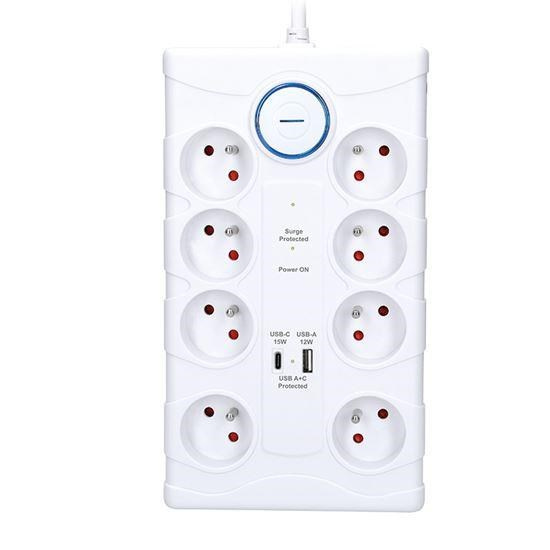 Prepäťová ochrana s USB nabíjačkou a 8 zásuvkami
