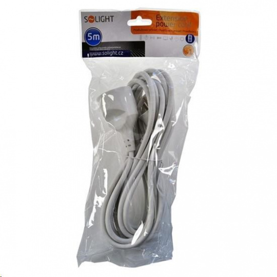 .Solight prodlužovací přívod - spojka, 1 zásuvka, 5m, 3 x 1mm2, bílá