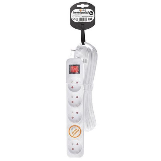 Praktický biely predlžovací kábel s dĺžkou 5 metrov a piatimi zásuvkami umožní priviesť elektrickú energiu tam, kde nie je dostupná pevná zásuvka. Podsvietené vypínač umožňuje pohodlné ovládanie všetkých pripojených zariadení. Ideálny pre domáce aj kancelárske využitie.