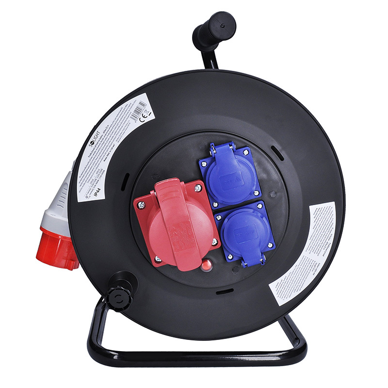 Odolný predlžovací prívod na bubon s dĺžkou 25 m, s jednou zásuvkou na 400 V a dvoma zásuvkami na 230 V je ideálnou voľbou na napájanie stavebných strojov, profesionálneho náradia alebo dielenského vybavenia. Vďaka káblu z mäkčenej gumy a krytiu IP44 je vhodný aj do náročných podmienok na stavbách alebo v priemysle. Samovoľnému navíjaniu bráni integrovaná aretačná brzda.