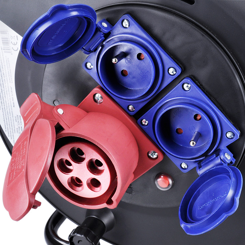 Prívod kombinuje jednu zásuvku na 400 V a dve klasické zásuvky 230 V, čo umožňuje napájať silové aj bežné spotrebiče z jedného miesta. Zváračky, uhlové píly, miešačky, kompresory atď. Skvelý pomocník na stavbách, v dielňach aj v náročných prevádzkach.