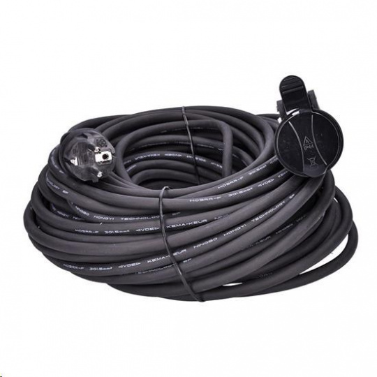 Odolný gumový kábel typu s s prierezom vodičov 1,5 mm2 odoláva strednému mechanickému namáhaniu aj zhoršeným klimatickým podmienkam. Môžete sa na neho spoľahnúť všade tam, kde klasický PVC kábel už nestačí. Samozatváracie viečko chráni zásuvku pred vodou a prachom.