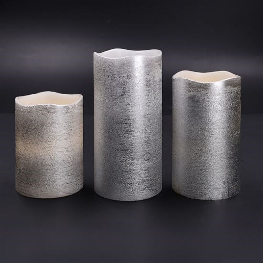 Solight sada LED svíček, 3x svíčka, 10/13/16cm, stříbrná barva, 3x AAA