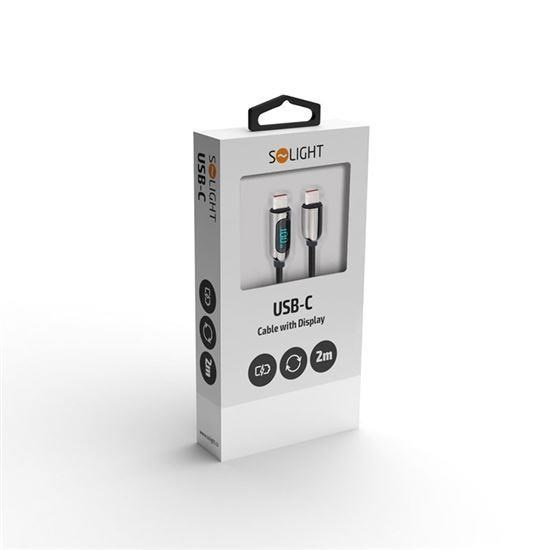 Solight USB-C kabel s displejem, USB-C konektor - USB-C konektor, 100W, 2m