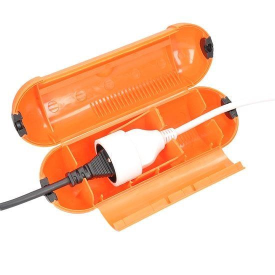 Odolné ochranné puzdro na kábly chrání elektrické spojenie pred vlhkosťou, prachom a mechanickým poškodením. Vďaka krytiu IP44 je vhodné pre vonkajšie použitie, napríklad na záhrade, stavbe, ale skvele poslúži aj v interiéri. Zabraňuje oxidácii konektorov a obmedzuje riziko nechceného odpojenia káblov pri pohybe. Určené pre jedno spojenie s jedným vstupom a výstupom, tzn. pre jednozásuvkové predlžovacie prívody. Jednoduché, ale účinné riešenie pre bezpečné pripojenie všade tam, kde je potrebná ochrana proti nepriazni počasia.