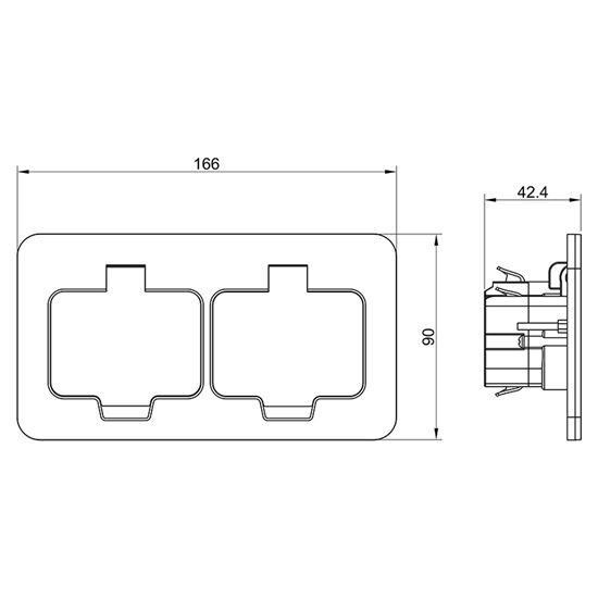 zásuvka dvojnásobná uzemnená 2x (2P+E), obdĺžnikový tvar
