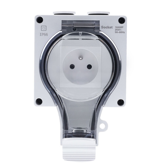 Vonkajšia zásuvka s priehľadným krytom a krytím IP66 ponúka maximálnu bezpečnosť v náročných podmienkach. Je plne chránená proti prachu, striekajúcej vode zo všetkých smerov a elektrickým úrazom pri kontakte s nástrojmi či vodičmi väčšími ako 1 mm. Vďaka tomuto vysokému stupňu ochrany je ideálna na použitie v priemyselnom aj domácom prostredí, a to aj vo vlhkých alebo prašných podmienkach.