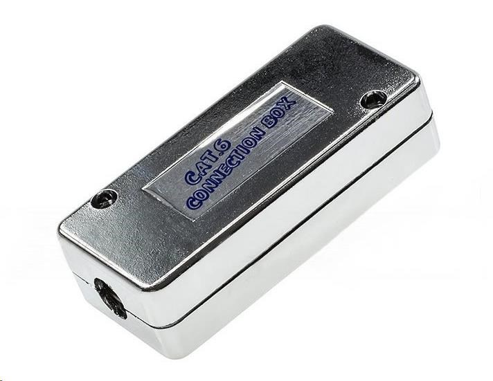 Propojovací box CAT6, stíněný pokovením. Umožňuje propojit kabelové segmenty beze ztráty kvality vedení. Narážecí kontakty.