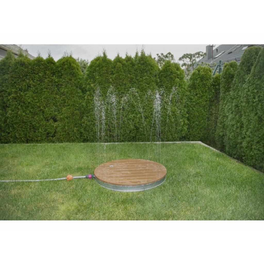Sprcha, ktorá nepoškodí žiadnu zábavu a budú ju milovať deti aj dospelí! Sprchu zapnete otočným kolieskom, ktoré je umiestnené v rošte sprchy a nastavíte si požadovanú výšku prúdu. Ten môže byť vysoký až 4 m! Po obvode sprchy je umiestnených 18 trysiek, z ktorých tryská voda do požadovanej výšky a dopadá na vás ako pri ľahkom letnom daždi. A zábava začína!