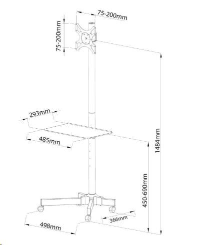 Stojan ErgoSolid Falco 40 Výškovo nastaviteľný, skladací, pre TV 30-65", polička, cestovný so zámkom, nosnosť 60kg Vynikajúci, cenovo dostupný stojan na zavesenie TV s uhlopriečkou 30" až 65"- Stojan je výškovo nastaviteľný od 100cm do 148cm, skladací +/- 15° a v balení nájdete poličku na príslušenstvo s rozmermi 485mm x 293mm a nosnosťou 4kg. Kabeláž sa dá viesť skryto cez telo stojana. Stabilná základňa s rozmermi 837 mm x 634 mm je vybavená kolieskami s aretáciou. Stojan je vďaka peknému dizajnu, spoľahlivosti a nízkej cene vhodný do obchodov, showroomov, predajní, hotelov, na veľtrhy, konferencie, ale aj do domácností. Stojan ErgoSolid Falco 40 Ergosoild Falco 40: TV stojan 30-65 palcov, nosnosť 60kg, polička, nastavenie výšky, vedenie káblov, pojazd so zámkom Technické údaje: nosnosť 60kg podpora štandardov VESA 100x100 až 600x400 možnosť zavesenia TV s uhlopriečkou 30" až 65" nastavenie výšky TV od 100cm do 148cm možnosť náklonu +/- 15° polička na príslušenstvo, rozmery 485mm x 293mm. nosnosť 4 kg systém skrytého vedenia káblov cez telo stojana stabilná základňa s rozmermi 837 mm x 634 mm kolieska s aretáciou materiál oceľ vynikajúca kvalita a pekný dizajn farba čierna záruka 3 roky..