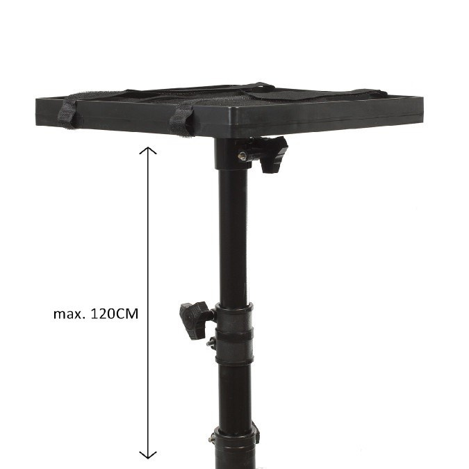 Stojan na projektor Fiber Mounts M9C20 Stojan na projektor alebo notebook, polica s rozmermi 320x295mm, nastavenie výšky od podlahy 75-120cm, istiace popruhy na suchý zips, nosnosť 10kg Podlahový stojan nielen na projektor alebo notebook s policou o rozmeroch 320x295mm, kde si jednoducho nastavíte požadovanú výšku v rozmedzí 75cm až 120cm od podlahy. Polica je vybavená istiace popruhy na suchý zips. Rýchla montáž, bez potreby akéhokoľvek náradia. Stojan je v zloženom stave veľmi skladný a ľahký, ideálny aj na časté prenášanie alebo prepravu. Farebné prevedenie čierne, záruka 3 roky. Stojan na projektor alebo notebook Fiber Mounts M9C20 Technické údaje: nosnosť 10kg horná polica o rozmeroch 320 x 295mm nastaviteľná výška police od podlahy od 750mm až do 1200mm ideálny na projektory, menšie notebooky, laptopy, All in One PC a pod. istiace popruhy na suchý zips jednoduché skladanie a nastavenie stojanu do požadovanej výšky skladný, ľahko prenosný farebné prevedenie čierne záruka 3 roky Stojan na laptop Fiber Mounts M9C20 Široké spektrum využitia - stojan nemusí primárne slúžiť iba na projektory, ale napr. aj na notebooky, laptopy, All in One PC a pod. Fantázii sa medze nekladú! Zariadenie nesmie mať hmotnosť vyššiu ako 10kg a malo by sa zmestiť na poličku o rozmeroch 320x295mm.