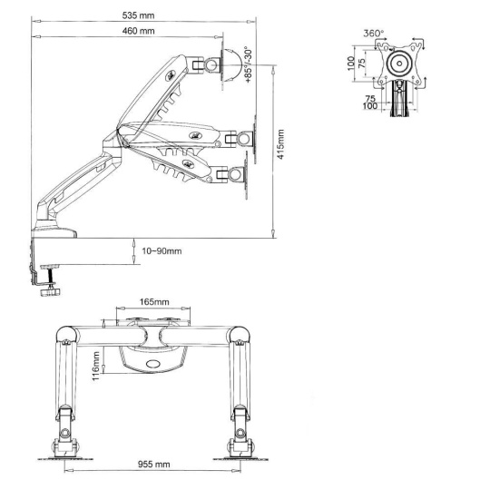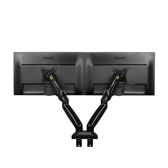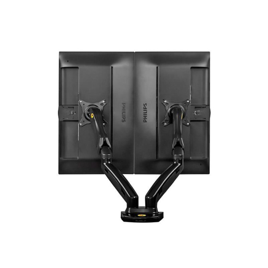 Stolný držiak na 2 monitory displeja NB F160 Stolný držiak na zavesenie 2 monitorov 17-30", nezávislé nastavenie každého monitora, výškové polohovanie 140-400mm, otáčanie do strán +/-180°, naklápanie +85°/-30°, vzdialenosť od uchopovacieho bodu 0-530mm, pivot +/-360°, VESA 75x75 a 100x100, nosnosť 18kg Vynikajúci stolný držiak na monitory a menšie televízory v profesionálnej kvalite, s pekným dizajnom, s množstvom nadštandardných možností nastavenia. Otáčanie obrazovky do strán, naklonenie nahor aj nadol vo vysokom uhle, nastavenie vzdialenosti od uchytenia, korekcia roviny obrazovky, horizontálne alebo vertikálne otočenie obrazovky, systém skrytého vedenia káblov. Výškové nastavenie až 400mm, výšková regulácia 260mm - veľmi jednoduchá manipulácia. Všetko v unikátnom dizajne. Držiak má veľmi odolnú a bezpečnú konštrukciu a je vhodný aj do veľmi vytížených prevádzok, kde je potrebná neustála manipulácia. Stolný držiak na 2 monitory NB F160 NB F160 kvalitný dvojmonitorový držiak na stôl, polohovateľný Držiak je vďaka možnosti úplnej nastaviteľnosti, profesionálnej konštrukcii a peknému dizajnu vhodný pre veľmi široké spektrum využitia. Odporúčame ako do domácností, tak kancelárií, pracovní, školských tried, nemocníc, call centier, IT pracovísk, prevádzok a firiem. Stolný multimonitorový držiak NB F160 - nezávislé zavesenie 2 monitorov na stolný držiakKancelársky stolný držiak na 2 PC monitory v TOP kvalite a dizajne - NB F160 Technické údaje: nosnosť 18kg podporuje VESA štandardy 75x75 a 100x100 odporúčame na monitory a televízory s uhlopriečkou 17" až 30" otáčanie na obe strany +180° až -180° nastavenie výšky monitorov 140-400mm naklonenie monitorov +85°/-30° vzdialenosť od stolového uchytenia 0-530mm horizontálne aj vertikálne otočenie obrazovky - funkcia pivot +/-360° systém pre vedenie káblov profesionálny držiak vyššej kvality 2 typy uchytenia na stolovú dosku - na okraj alebo skrz stolovú dosku 10-90mm záruka 5 rokov Kancelársky držiak na dva monitory NB F160 Kvalitný polohovací držiak na monitory do kancelárie NB F160