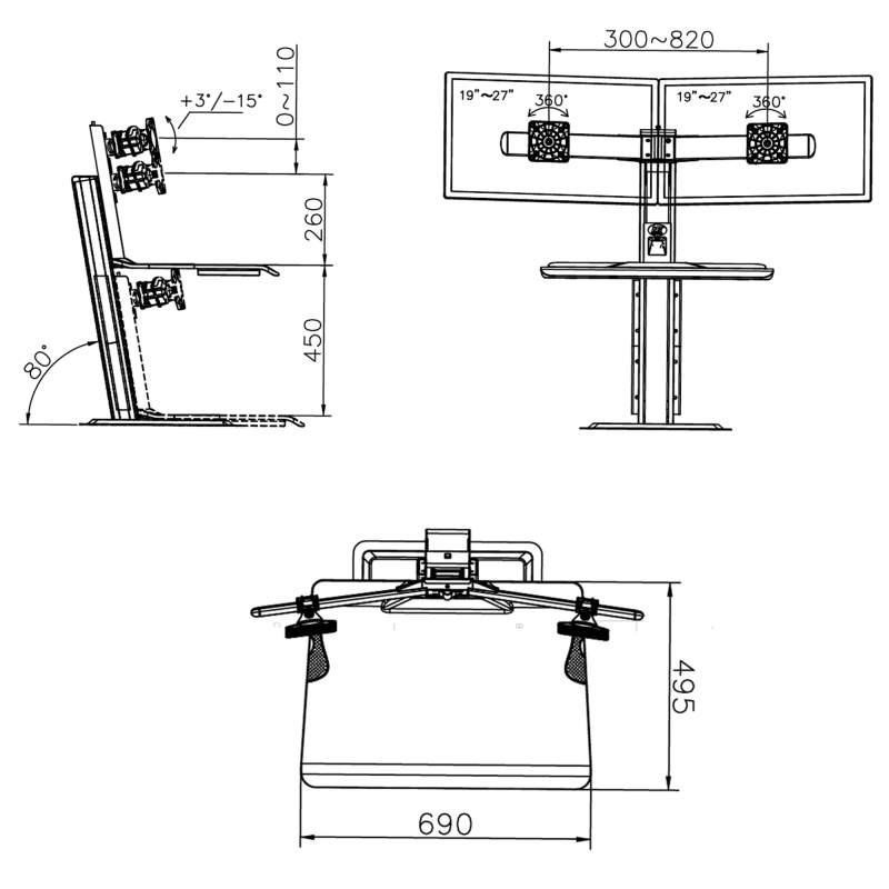 Stolná pracovná stanica pre 2 monitory Fiber Mounts ST15-2AW Profesionálna pracovná stanica na 2 monitory 19-27" pre prácu sedke alebo v stoji Pracujte kedykoľvek sedke alebo v stoji - zlepšite svoje pracovné pohodlie a urobte niečo pre svoje zdravie. Profesionálna pracovná stanica na 2 monitory ST15-2AW umožňuje vďaka pokročilému systému veľmi jednoduché a rýchle nastavenie výšky monitorov do požadovanej polohy pre prácu sedke alebo v stoji. Luxusné biele prevedenie podčiarkuje úplne vynikajúcu kvalitu. Záruka 5 rokov. Profesionálna kancelárska stolná pracovná stanica na 2 monitory pre prácu sedke alebo v stoji Fiber Mounts ST15-2AWKancelárska stolná pracovná stanica výškovo polohovateľná pre prácu sedke alebo v stoji Fiber Mounts ST15-2AW Technické údaje: celková maximálna hmotnosť monitorov 11kg na monitory s uhlopriečkou 19-27" podporuje VESA štandardy 75x75 a 100x100 nastavenie výšky monitorov od police na klávesnicu a myš 0-110mm zmena výšky pre prácu sedke alebo v stoji 0-450mm vyššia produktivita práce, zdravší štýl práce unikátny pokročilý systém pre veľmi jednoduché a rýchle výškové polohovanie možnosť nastavenia náklonu monitorov +15° až -3° polica na klávesnicu a myš, rozmer 690x495mm esteticky ukrytý USB port funkcia pivot (rotácia monitorov o 360°) nádherný dizajn v bielom prevedení najvyššia kvalita, bezpečnosť a stabilita na pracovnom stole stačí voľné miesto s rozmermi 450x480mm záruka 5 rokov Stolná pracovná stanica pre 2 monitory do kancelárie alebo pracovne pre jednoduchú a rýchlu zmenu práce sedke alebo v stoji Fiber Mounts ST15-2AW Pracovná stanica pre 2 monitory ST15-2AW podporuje VESA štandardy: VESA 75x75 VESA 100x100 Pracovná stanica na 2 monitory pre prácu sedke alebo v stoji Fiber Mounts ST15-2AWPracovná stanica na 2 monitory pre prácu sedke alebo v stoji Fiber Mounts ST15-2AW Pracovná stanica na 2 monitory pre prácu sedke alebo v stoji Fiber Mounts ST15-2AWPracovná stanica na 2 monitory pre prácu sedke alebo v stoji Fiber Mounts ST15-2AW