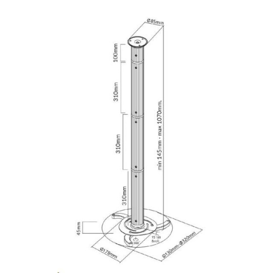 Kompletná špecifikácia Stropný držiak projektora Fiber Mounts M5C17 Dĺžkovo nastaviteľný, otočný, sklopný držiak projektora na strop, strieborný, nosnosť 10kg, univerzálny na všetky bežne dostupné projektory Stropný držiak projektora s nastaviteľnými vzdialenosťami od stropu Fiber Mounts M5C17 Univerzálny, kvalitný polohovací držiak na stropné zavedenie projektorov a dataprojektorov. Držiak je vhodný na 99% všetkých dostupných projektorov. Súčasťou balenia sú dĺžkové nástavce, vďaka ktorým je projektor možné zavesiť od stropu v dĺžke od 13 až do 106cm, nakloniť o 15° a otáčať do strán. Držiak je vyrobený z hliníku. Farebné prevedenie strieborné. Držiak pre stropné upevnenie projektora Fiber Mounts M5C17 Technické údaje: nosnosť 10kg univerzálny, vhodný na 99% bežne dostupných projektorov náklon +/- 15° natočenie do stan +/- 360° nastaviteľná dĺžka od stropu 13, 39, 70 alebo 106cm farba strieborná hliníková konštrukcia záruka 2 roky