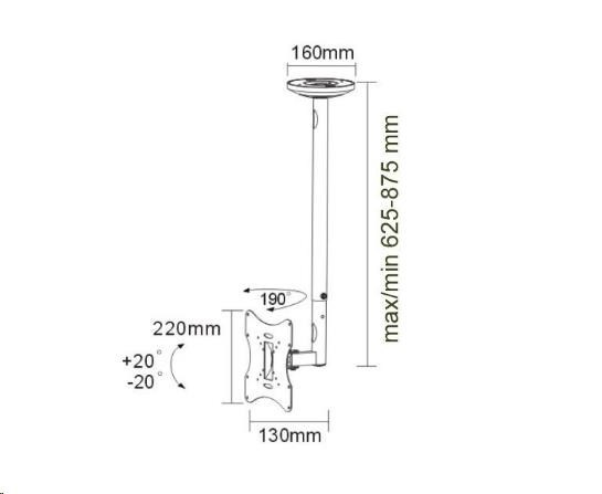 Technické údaje: maximálne zaťaženie 30kg na LCD plazma LED televízory a monitory odporúčaná uhlopriečka obrazovky 22" až 42" VESA štandard 75x75 až 200x200 otočný do strán +90° / -90° náklon obrazovky +20° / -20° nastaviteľná dĺžka držiaka od 625mm do 875mm systém skrytého vedenia káblov kvalitná, bezpečná a pevná konštrukcia farba čierna záruka 2 roky VESA 75x75 VESA 100x100 VESA 200x100 VESA 200x200
