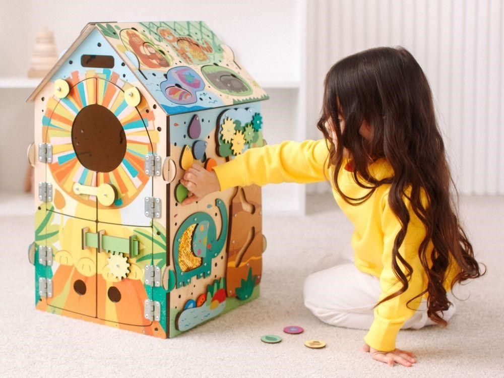 Svítící activity board domeček - Safari se lvem