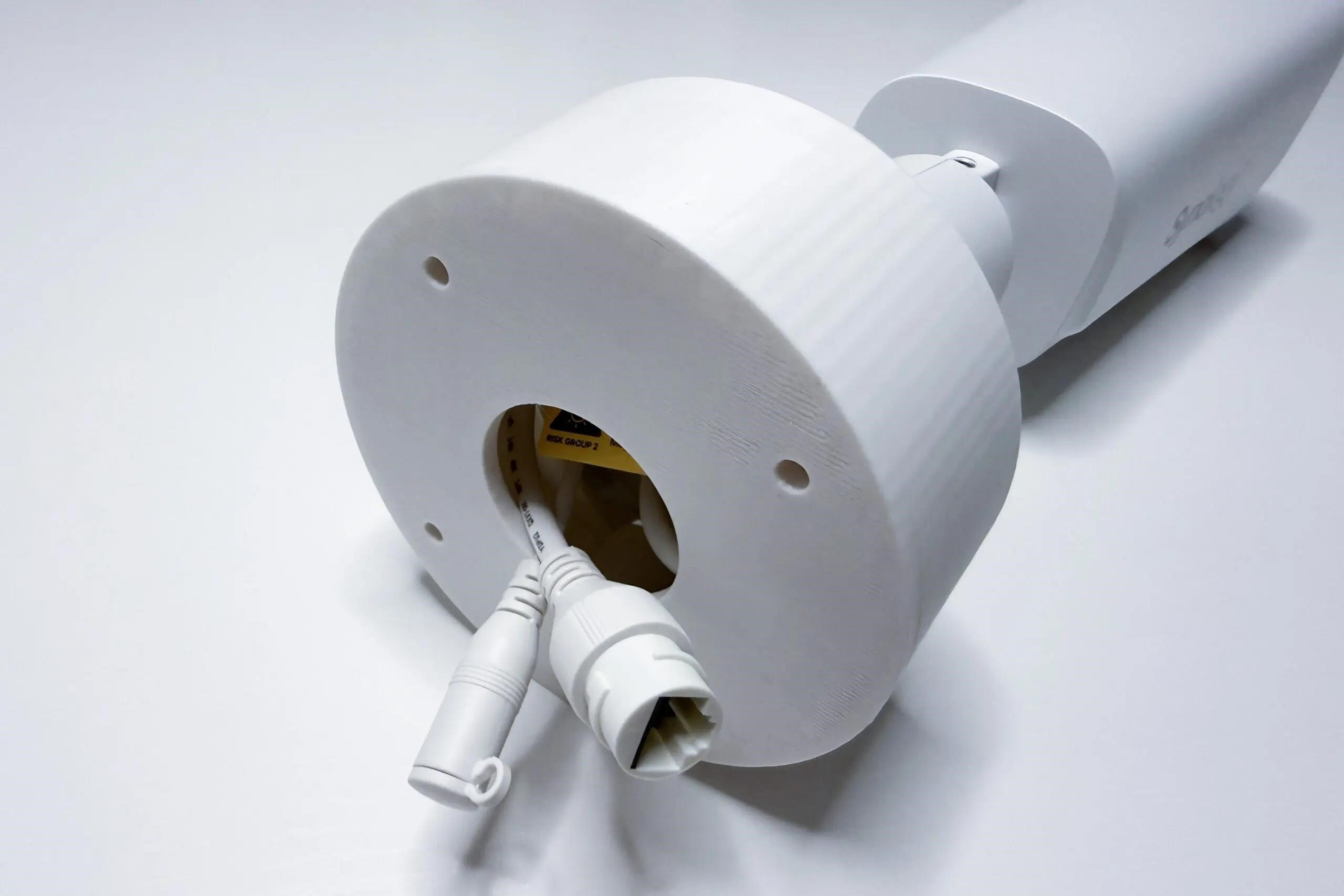 Plastový držiak je určený na upevnenie kamery Synology BC800Z na stenu alebo strop a to pomocou troch skrutiek. Držiak je vyrobený z PETG materiálu na 3D tlačiarskej tlačiarni, má bielu farbu.