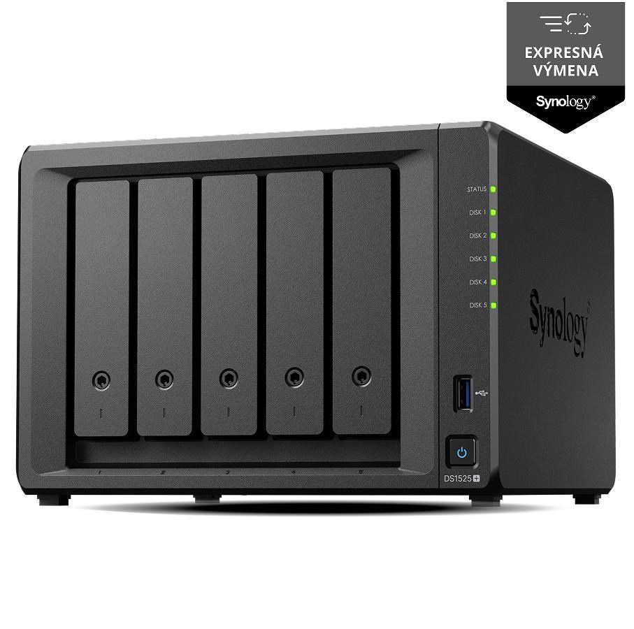 Synology DS1525+ DiskStation (4C/RyzenV1500B/2,2GHz/8GBRAM/5xSATA/2xM.2/2xUSB3.2/2x2,5GbE/1xPCIe/1xUSB-C)