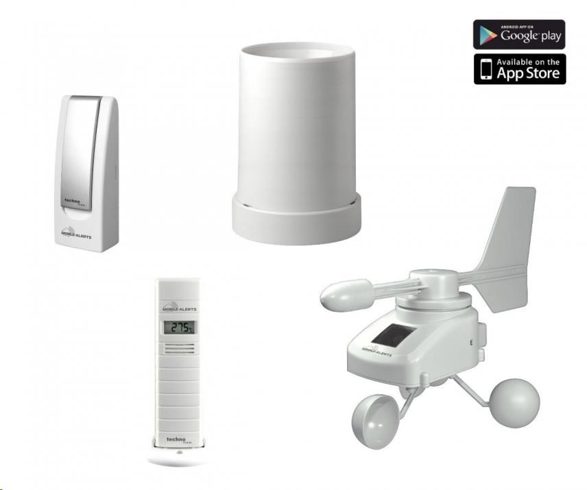 Meteorologická súprava umožňuje merať teplotu, relatívnu vlhkosť, zrážky a rýchlosť a smer vetra pomocou bezdrôtových senzorov a prenášať namerané údaje cez bránu a cez smerovač na internet. Na svojom mobilnom zariadení so systémom iOS 7 a novším alebo Android 3.2 a novším môžete na sledovanie nameraných údajov použiť aplikáciu MOBILE-ALERTS. Je možné pridať aj ďalšie bezdrôtové senzory, kde maximálny počet senzorov, ktoré je možné do brány zaznamenať, je 50.