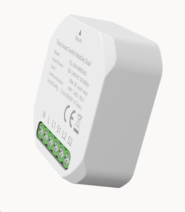 Pomocou modulu Tesla Smart Switch Dual môžete samostatne ovládať dva okruhy. To sa dá využiť napríklad v spálni, kde sa jeden pripojí k hlavnému svetlu v miestnosti a druhý k nočnému svetlu.