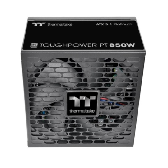 Toughpower PT 850W Platinum je kompatibilný s ATX 3.1, má certifikáciu 80 PLUS Platinum a podporuje nativné PCIe Gen 5.1 (12+4pin) pre napájanie novej generácie grafických kariet. Poskytuje 850 W nepretržitého výkonu pri 40 °C.