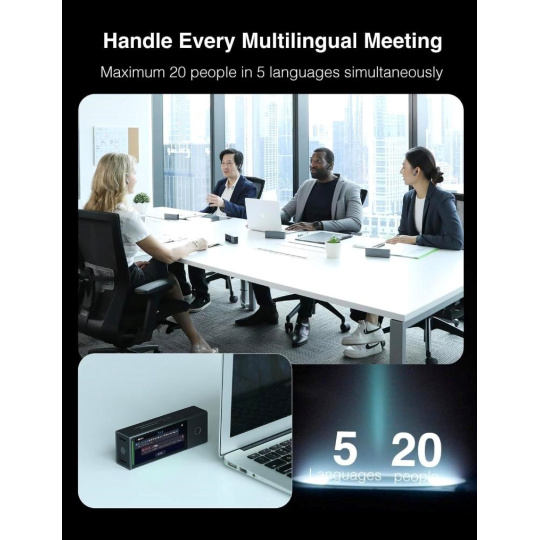 - Simultánne tlmočenie pre skupiny aj jednotlivcov - Dvojjazyčný alebo viacjazyčný preklad až pre 20 účastníkov súčasne v 5 rôznych jazykoch. Každý hovorí svojím jazykom – ostatní počujú preklad v reálnom čase.
