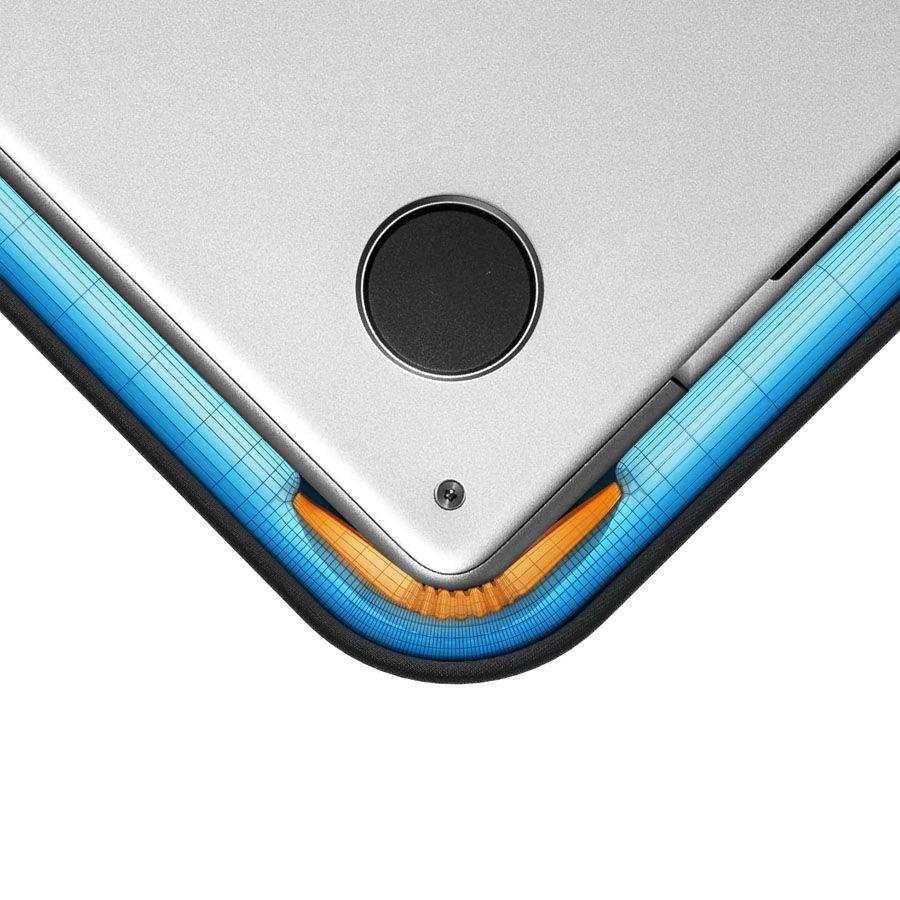 Váš notebook bude na cestách vždy v bezpečí vďaka patentovanému systému CornerArmor, zosilnenou ochranou hrán a rohov a vnútornou výstužou, ktorá absorbuje energiu pri nárazoch. Ide o úplne unikátnu technológiu, vďaka ktorej púzdro úspešne prešlo extrémnou vojenskou skúškou Military-Standard-Drop-Test. A tým ho žiadne iné neprekoná. Silná plyšová podšívka v hlavnej kapsi navyše chráni šasi notebooku pred poškriabaním.Padne ako uliate