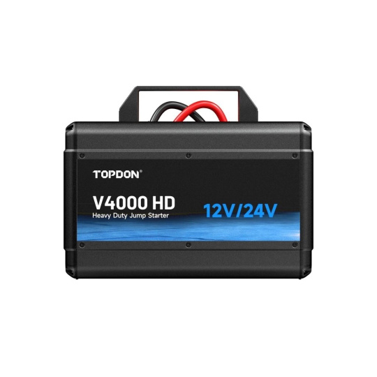 TOPDON V4000 HD je špičkový startovací zdroj navržený pro nestandartní podmínky. Tento profesionální model zvládá 12V i 24V systémy a je určen nejen pro osobní automobily, ale také pro nákladní vozy, autobusy, stavební techniku a těžká pracovní vozidla.
