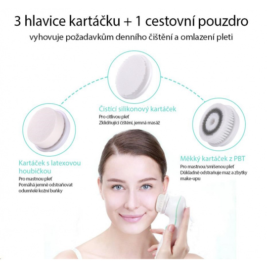 • Silikónová kefka pre citlivú pokožku, masíruje pleť a zlepšuje krvný obeh