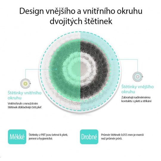• 0,055 mm PBT kefka pre odstraňovanie mazu, nečistôt a make-upu
